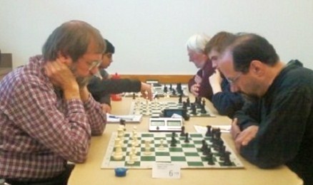 In the top quad, NM Sam Schmakel was the player to beat, and he won all three of his games. The next quad down saw Daum Hazners (2.5) edge out Mark Coleman (2.0) for first place. Evanston Chess Blitz TD Michael Matek took first with a perfect 3.0 in the third quad. Said Matek: "I really should play rated." We agree. Our bottom section was a sextet, which played three games and featured another perfect 3.0, this time by ETHS player Justin Liao. We'll definitely repeat this experiment. Continue on for complete results.